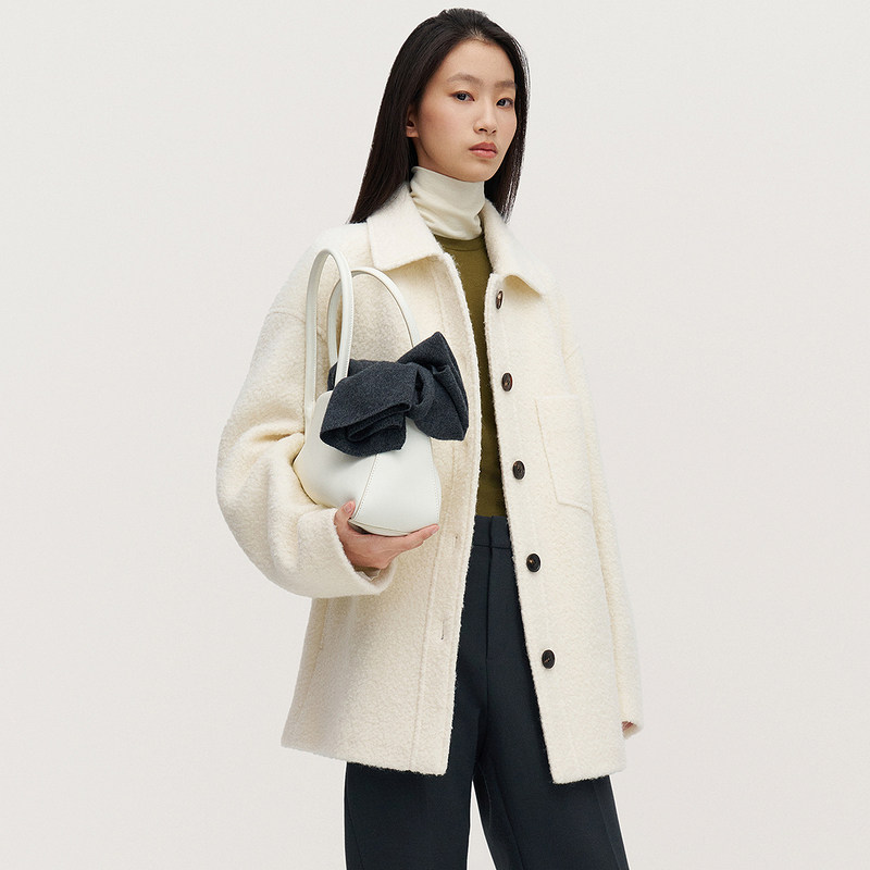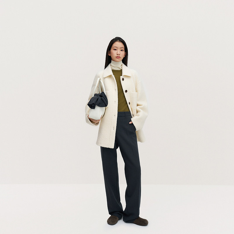 保暖2024秋冬新品 OCHIRLY欧时力 羊毛圈圈呢廓形感外套女中长款