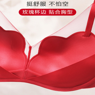 安莉芳玫瑰舒挺杯红色内衣裤 结婚新娘本命年小胸聚拢文胸罩 女套装