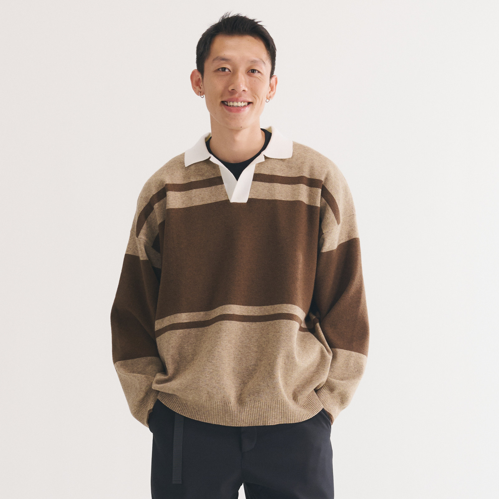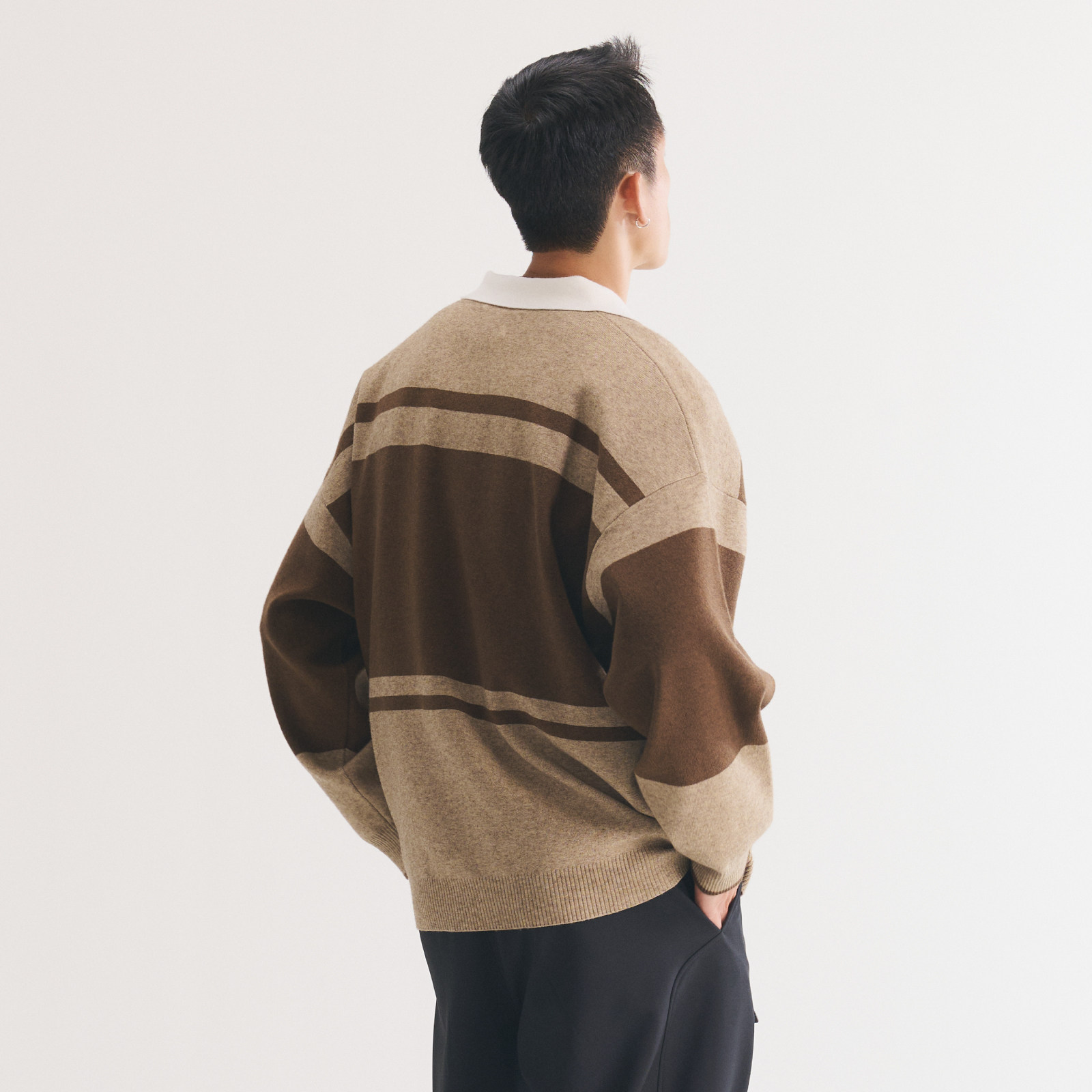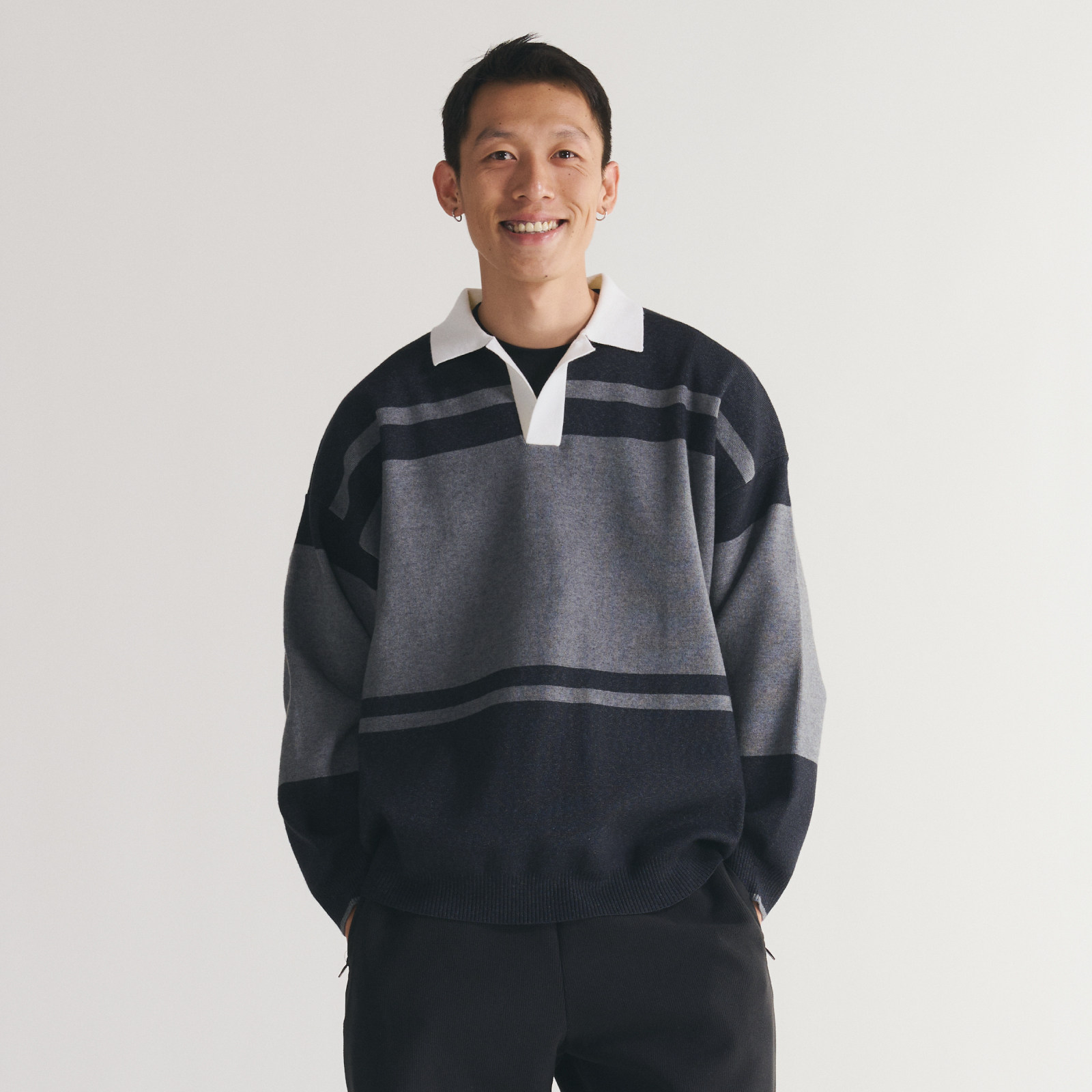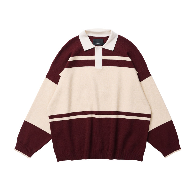 BOHRHOO24AW圣诞限定百搭款 抗皱防起球撞色条纹POLO领毛衣男女冬