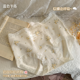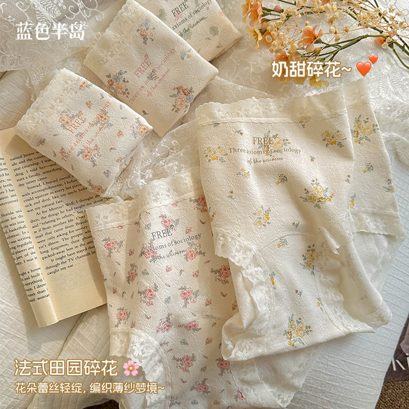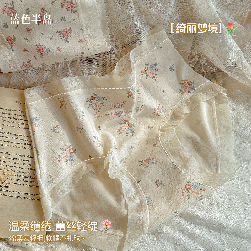 7A级抗菌中腰包臀不夹臀 少女三角裤 女士内裤 纯棉纯欲蕾丝碎花法式