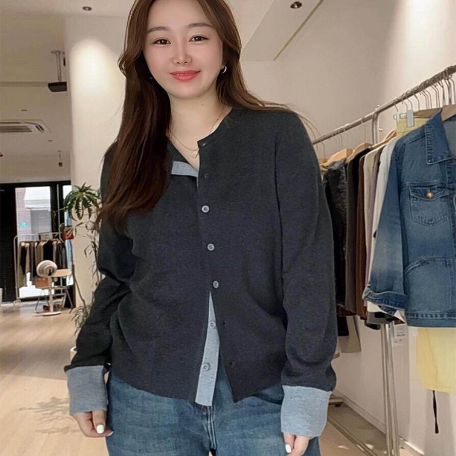 女装 针织衫 2025春秋新款 显瘦百搭圆领长袖 胖MM气质单排扣开衫 大码