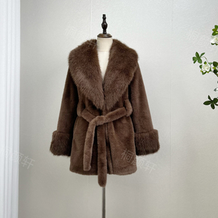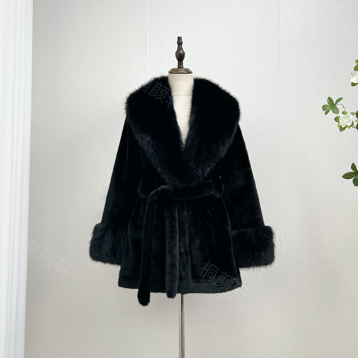 小个子皮毛一体小母貂大衣冬 短款 海宁皮草水貂毛外套女时尚 年轻款