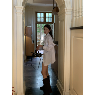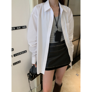 宽松慵懒风纯棉中长款 Halo 上衣大版 女春季 衬衣 Luu高级感白色衬衫