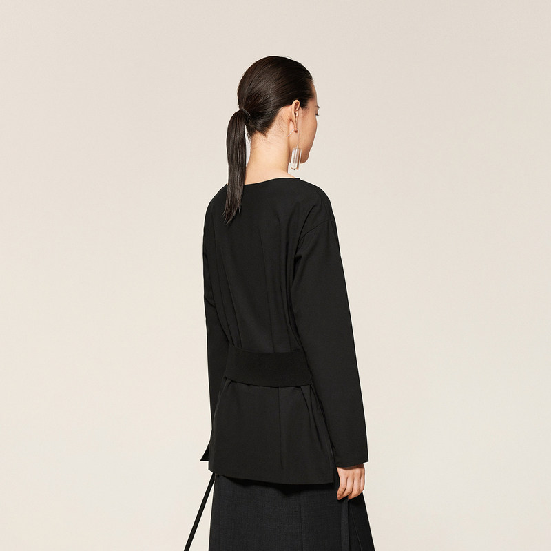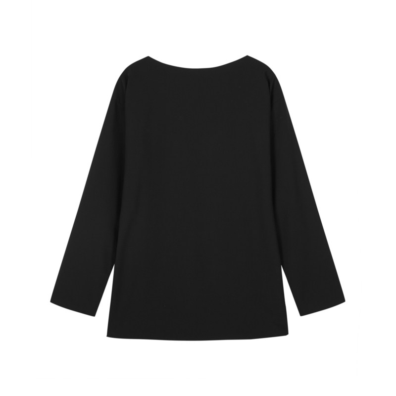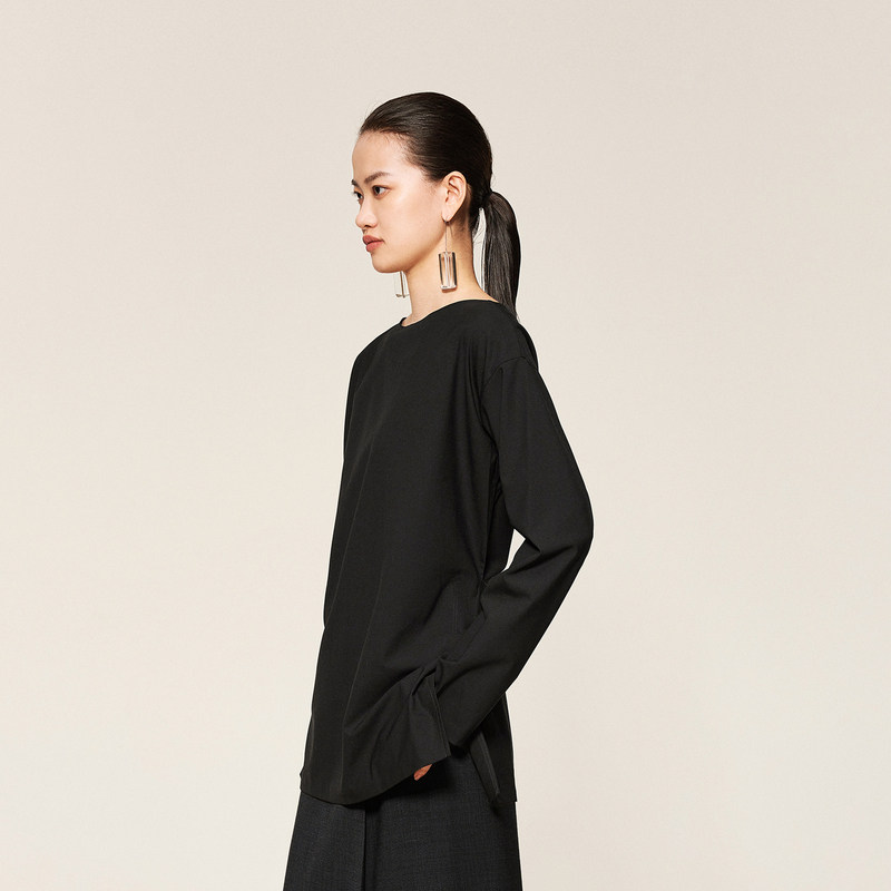 LESS春秋简约侧边开叉长袖 T恤女收腰套头一字领上衣女2O821473H