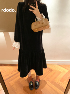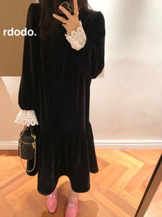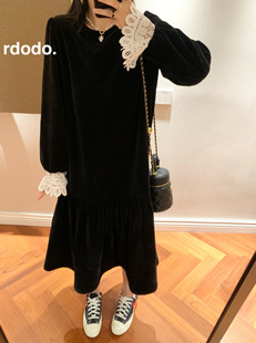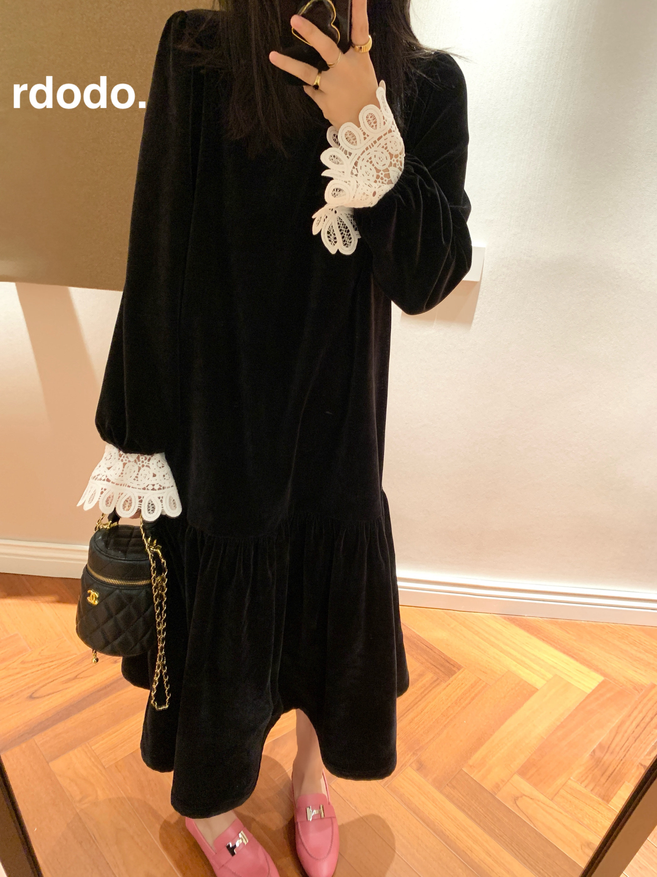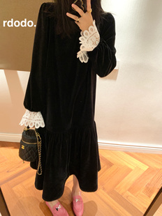 Rdodo自线财阀大小姐升级版 口蕾丝日本不粘毛丝绒连衣裙 可拆卸袖