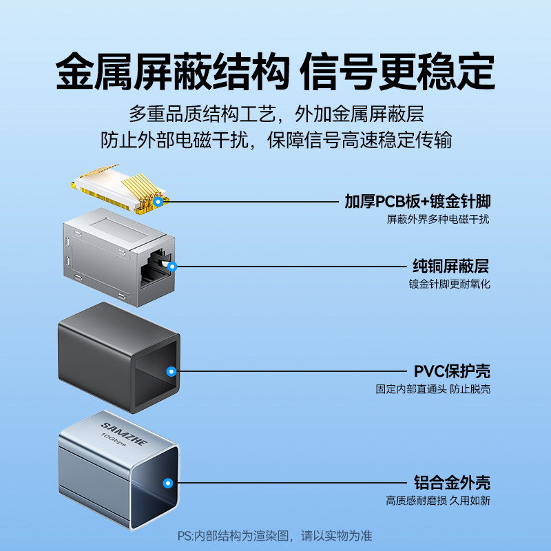 山泽万兆网线对接头屏蔽网线延长器rj45水晶头宽带直通头延长网线