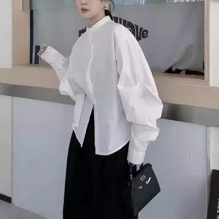 高级感欧货白色设计感衬衫 宽松极简风百搭气质上衣 女早秋2024新款