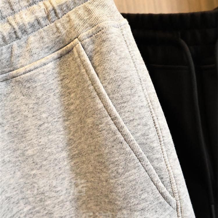 胖mm慵懒风松弛感加绒运动休闲裤 大码 女冬季 奶芙阔腿裤 子 黑色卫裤