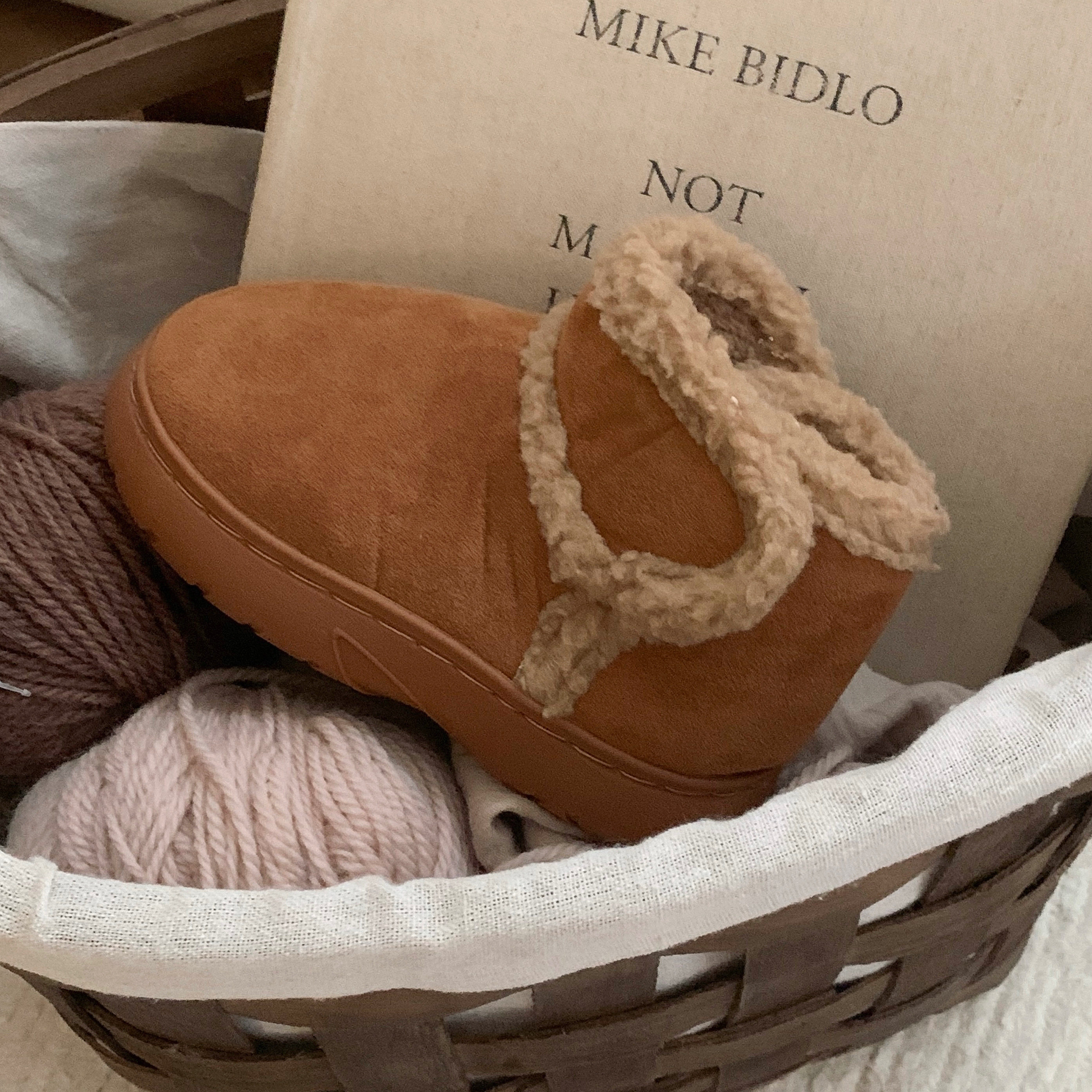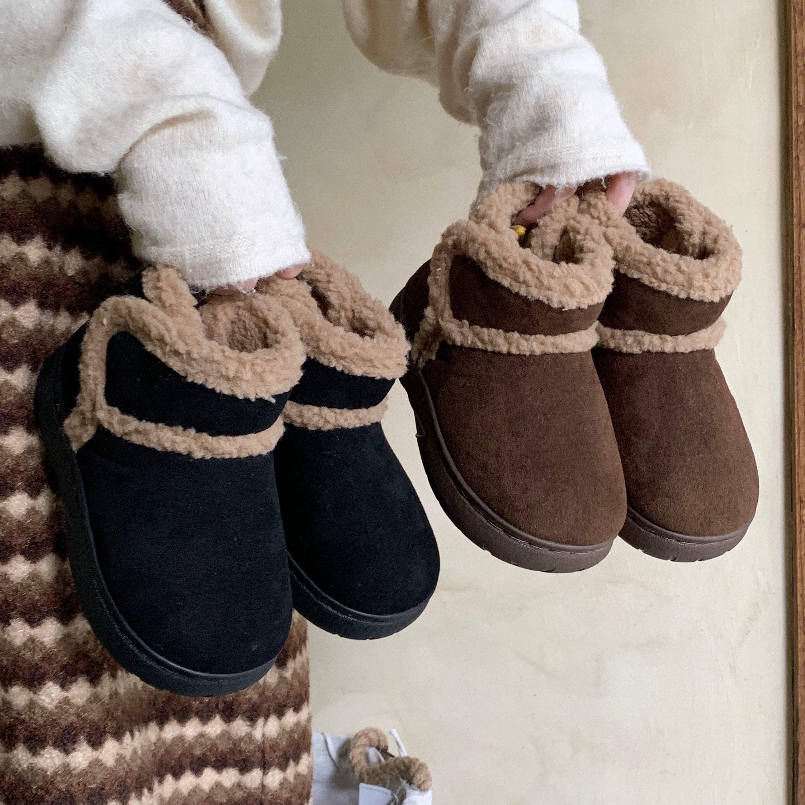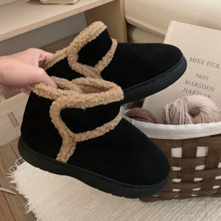 保暖加绒短筒棉靴百搭面包鞋 细细条 休闲复古羊羔毛雪地靴女冬季