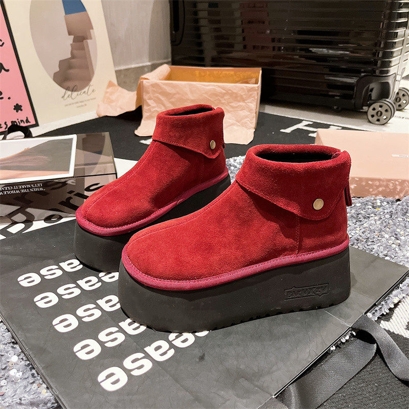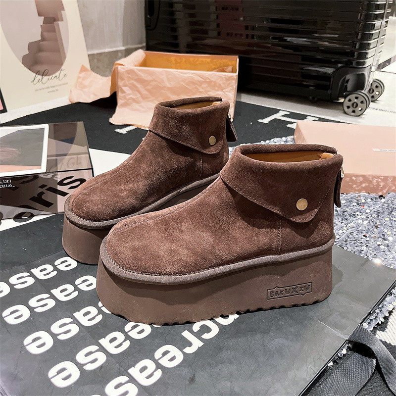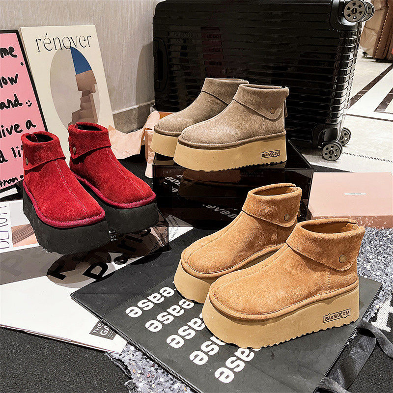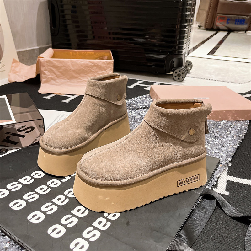 欧洲站复古勃肯鞋 磨砂皮厚底松糕小个子超高跟雪地棉靴短靴面包鞋