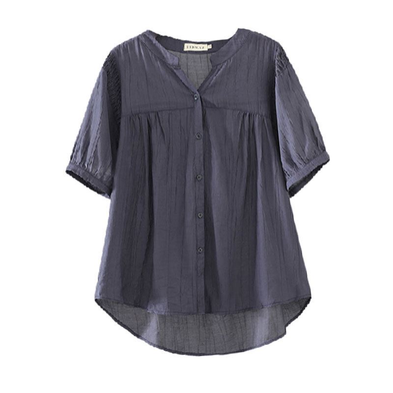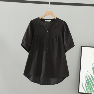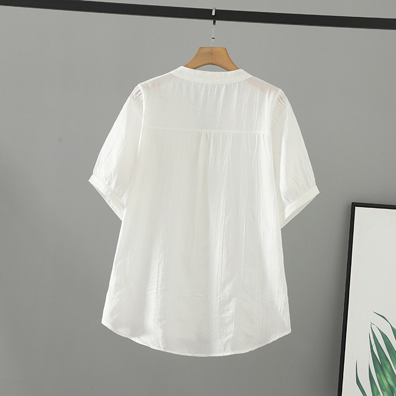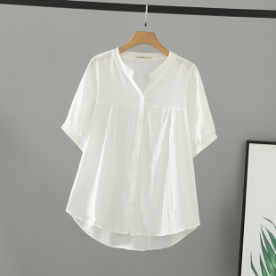 大码 女装 冰丝皱宽松短袖 衬衫 休闲衬衣 胖mm夏装 女V领开衫 2026新款
