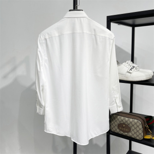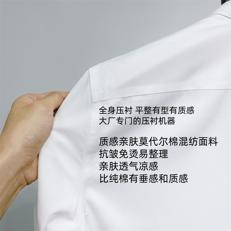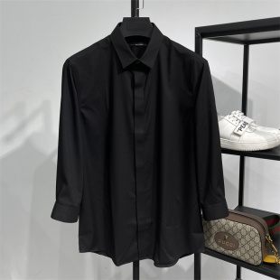 亲肤莫代尔中袖 DH男装 纯色小方领衬衫 合身七分袖 免烫弹力衬衣 夏季