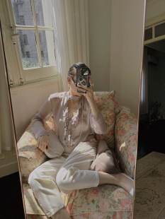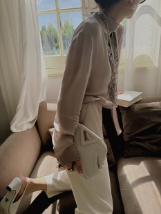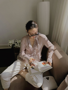 松紧腰衬衫 TOP家 复古廷风重工荷叶边V领长袖 法式 女 浪漫松弛感