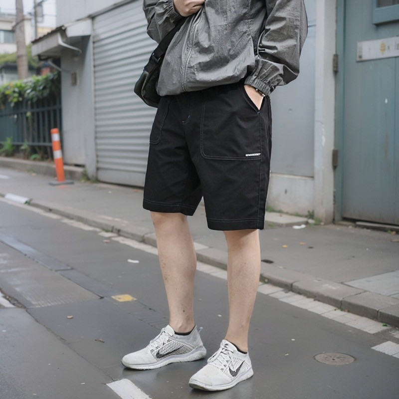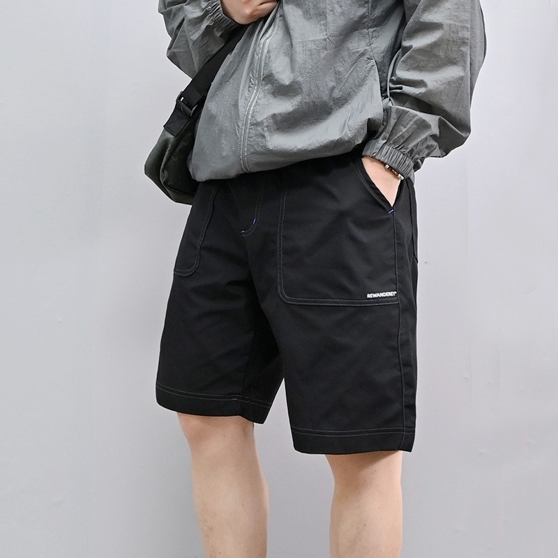 工装 松紧腰宽松多口袋五分裤 中裤 夏季 速干薄款 RE户外机能风男短裤