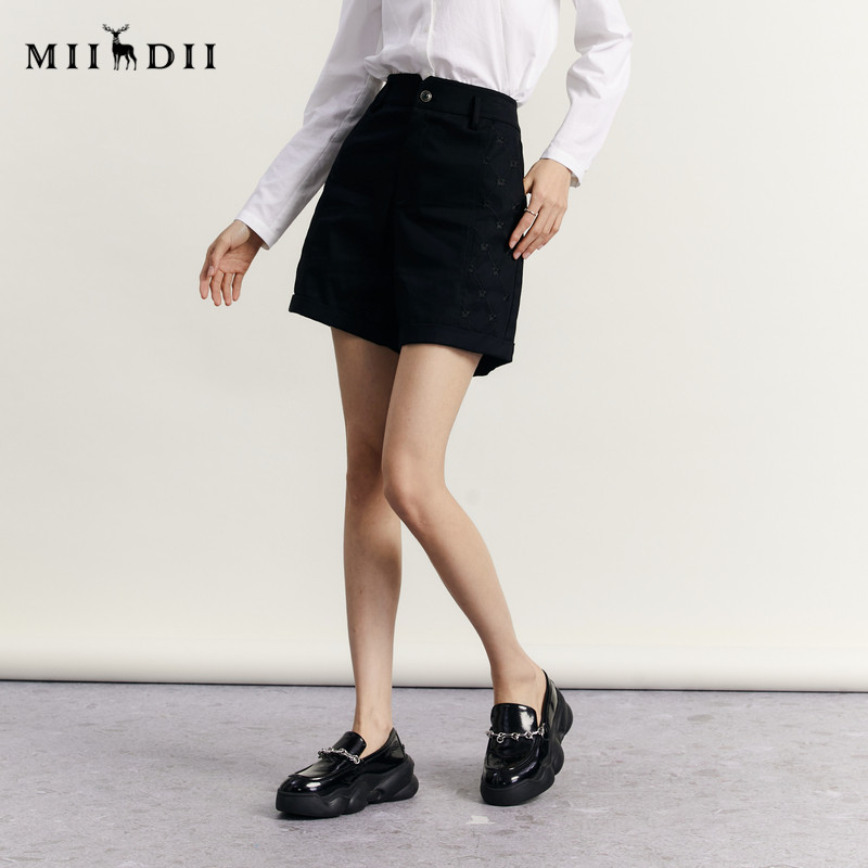 女2023秋季 A型短裤 新款 百搭绣花拼接直筒裤 233MK1004 时尚 谜底短裤
