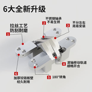 隐形门合页暗装 门三维可调暗藏室内木门折叠门外开不锈钢十字铰链