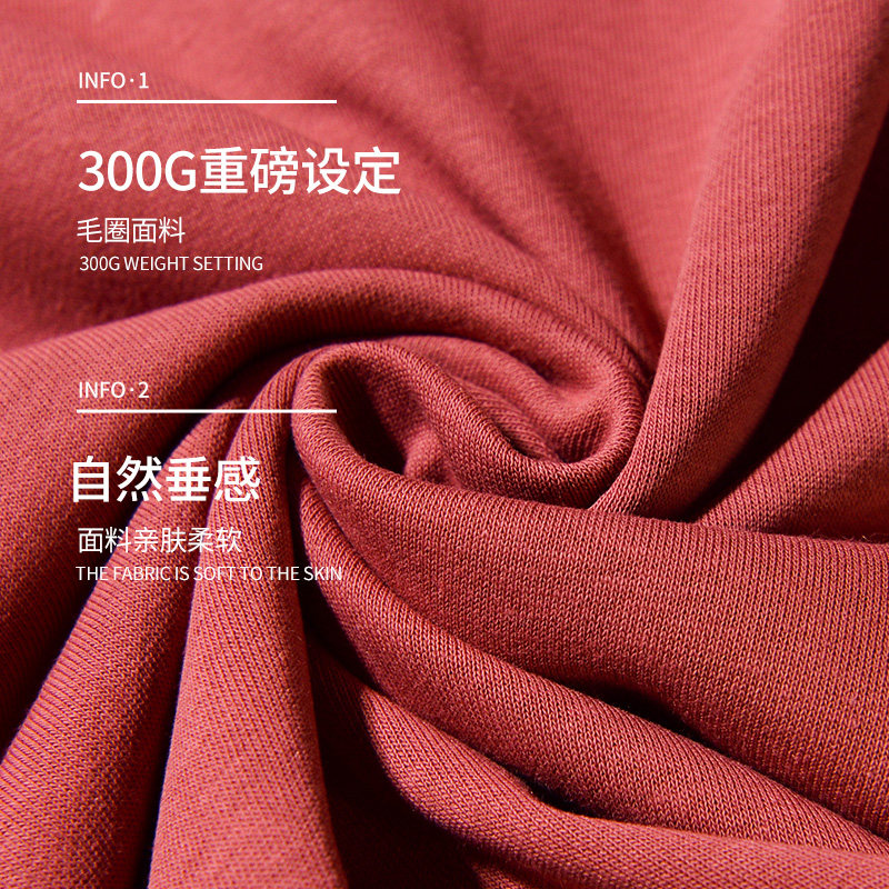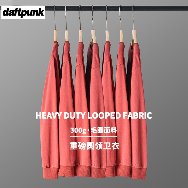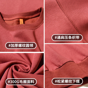 T恤外套男装 秋季 辣酱红300g重磅圆领纯色卫衣男潮牌情侣宽松长袖