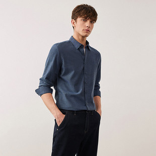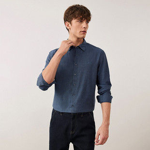 男长袖 Navigare意大利小帆船蓝色高级感磨毛衬衫 休闲衬衣 羊毛