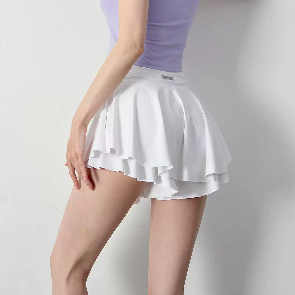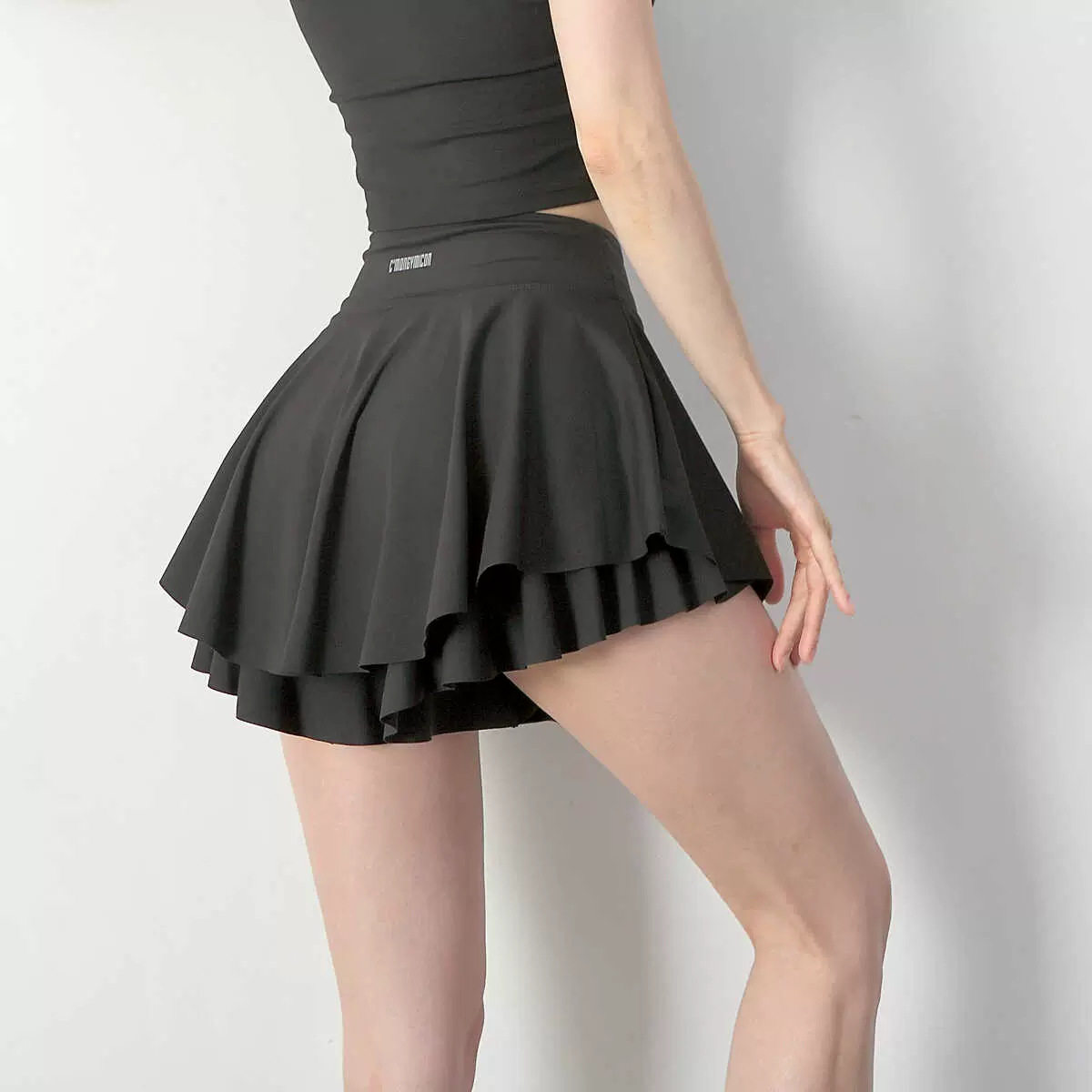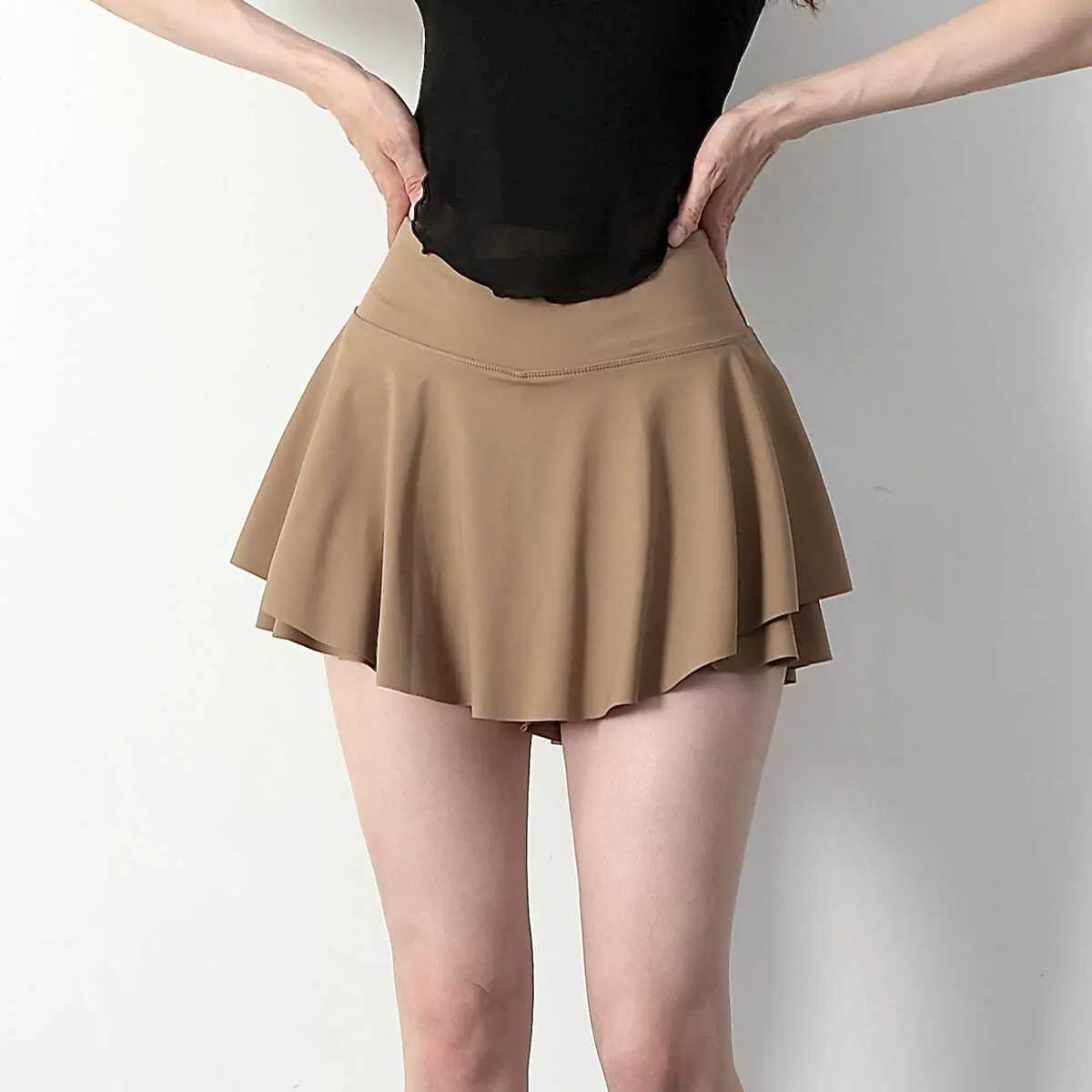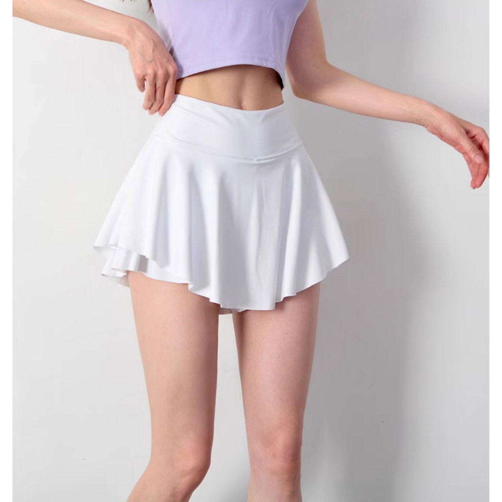 显腿长半身裙女 裙弹力跑步休闲裤 防走光运动短裤 纯色假两件跑步裤