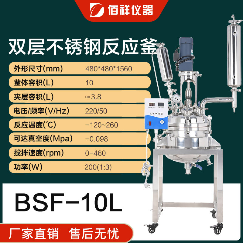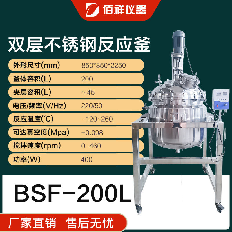 上海佰祥双层不锈钢反应釜高温高压电加热真空反应釜5L20L50L100L