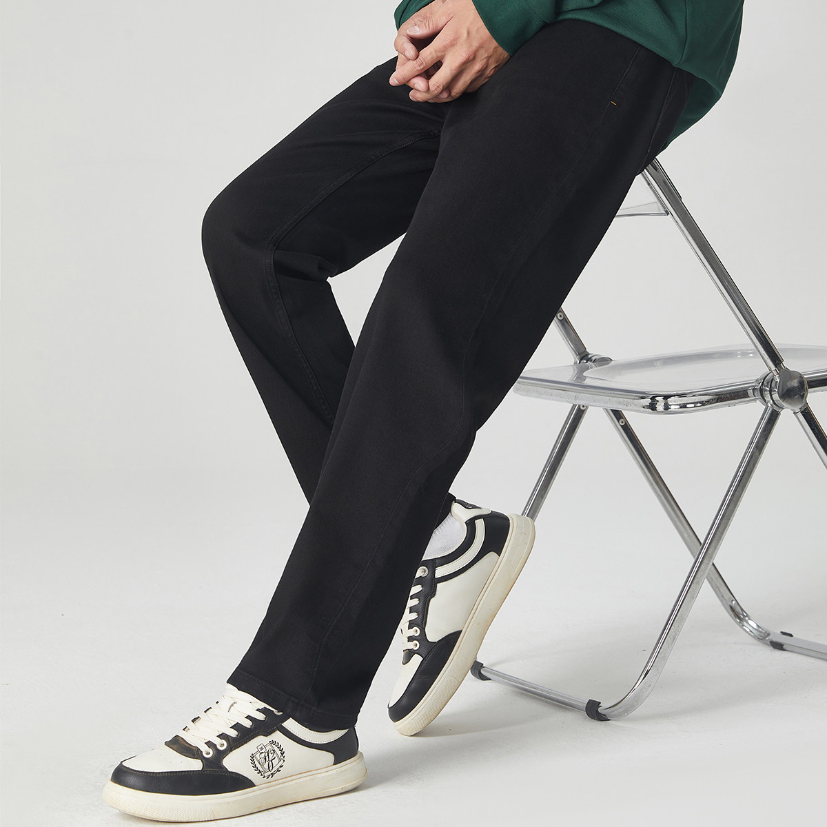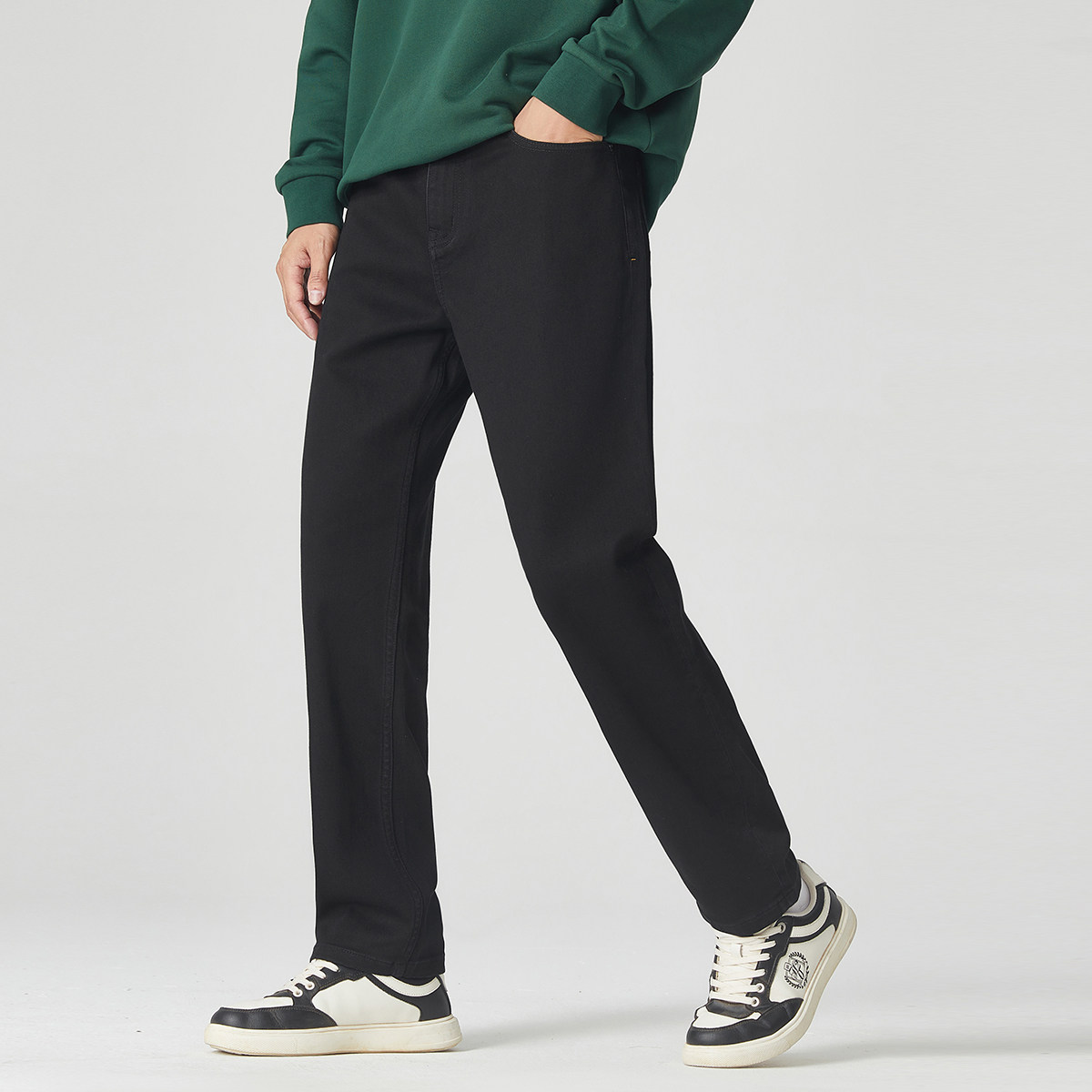 男夏季 卡宾黑色水洗牛仔裤 轻薄休闲垂感直筒长裤 高弹黑牛