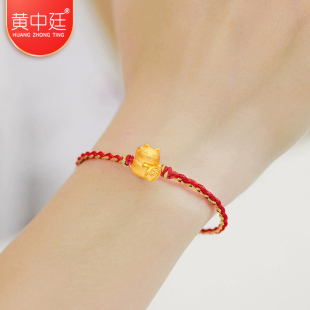 招财猫黄金转运珠手链999足金路路通男女情侣双色编织手绳情人节