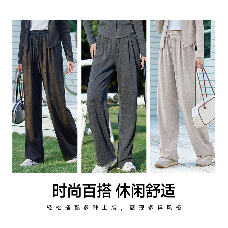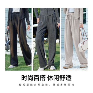 高腰垂感休闲直筒阔腿裤 新款 女2025秋季 班尼路S&K系列灰色糯米裤