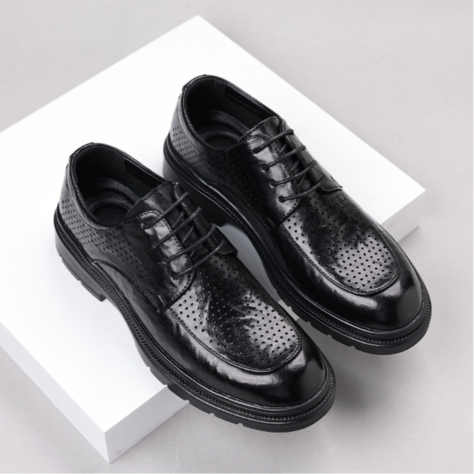 内增高休闲软底耐磨鞋 爸爸真皮鞋 镂空 商务正装 真皮牛皮蜻蜓牌男鞋