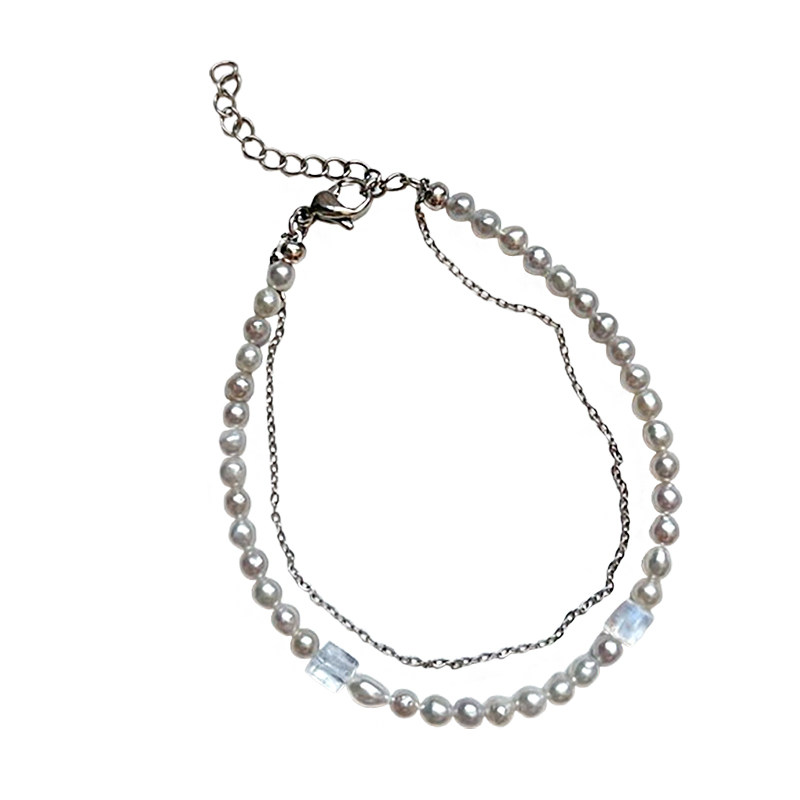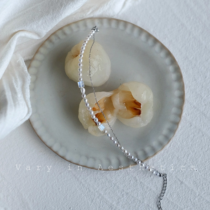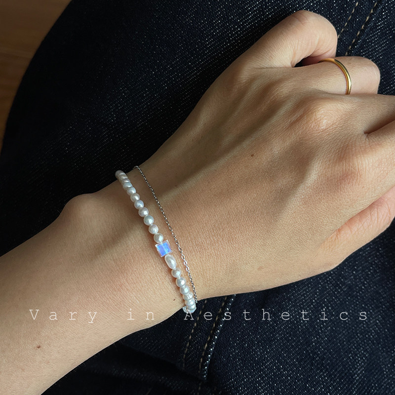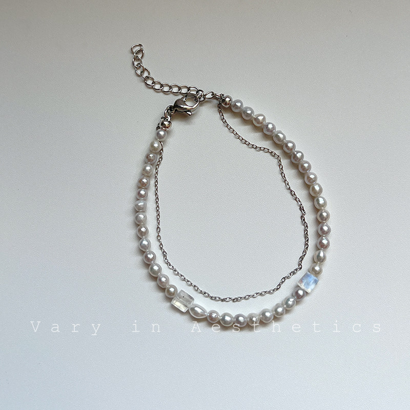 VIA天然淡水真珍珠月光石蓝光双层银色小众设计轻奢高级感手链女