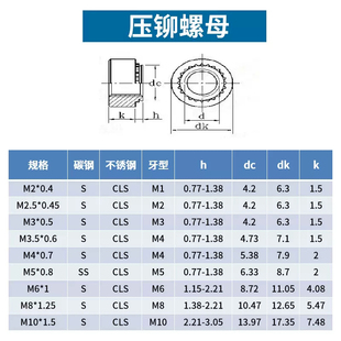 M2.5M3M4M5M6M8M10 410不锈钢压铆螺母压卯螺帽螺丝母SP