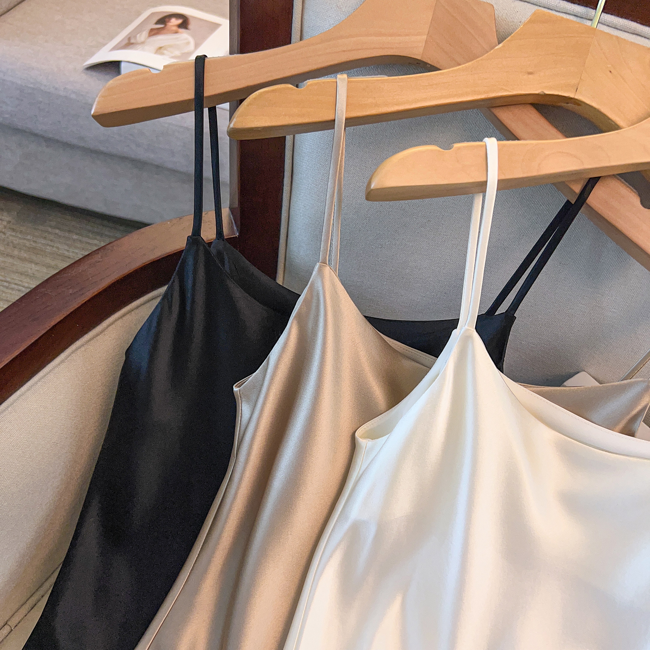 轻奢高级感醋酸吊带圆领背心细肩带缎面无袖 上衣内搭 温柔女夏季