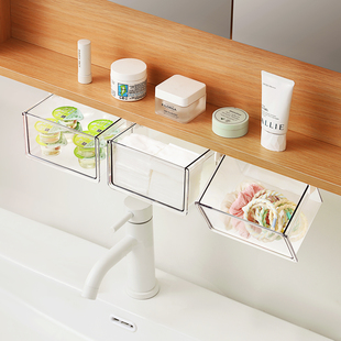 镜柜下抽屉式 收纳盒卫生间化妆品卸妆棉口红棉签透明置物架神器