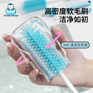 奶瓶刷套装 新生儿专用奶嘴清洗涮吸管硅胶清洁刷子三合一沥水架子