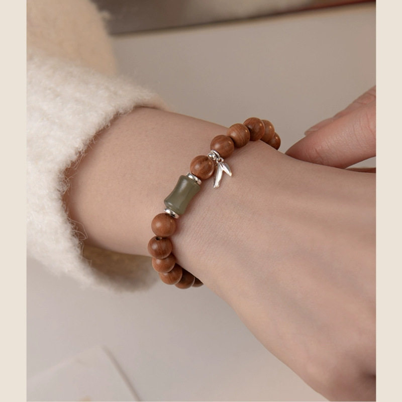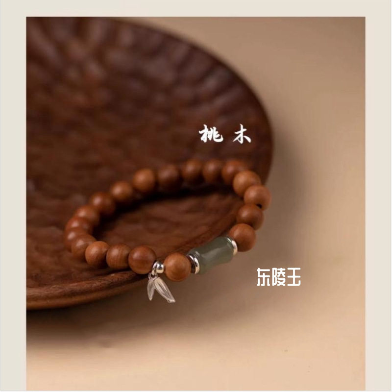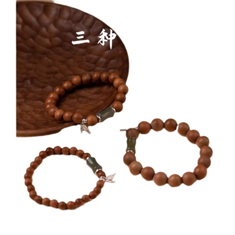 国禄天然和田玉竹节手串老桃木珠木质手链女男平安佛珠护身手