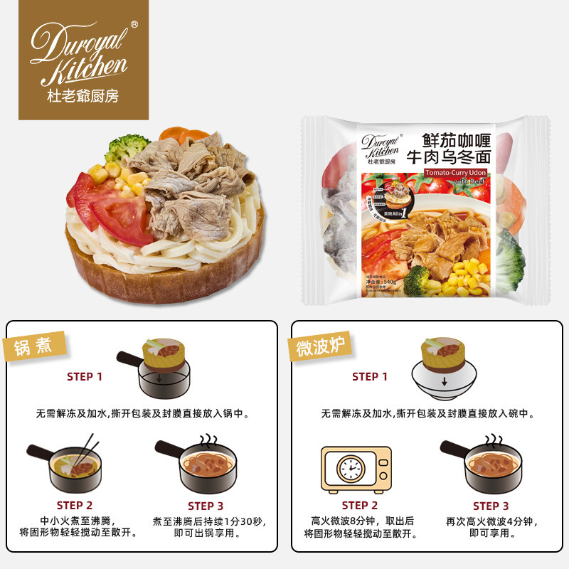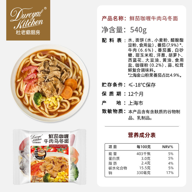 杜老爷厨房鲜茄咖喱牛肉乌冬面儿童早餐速食番茄面条 2件75折