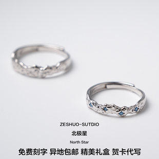 ZESHUO北极星 轻奢足银戒指 情侣对戒999纯银原创设计镶钻一对款