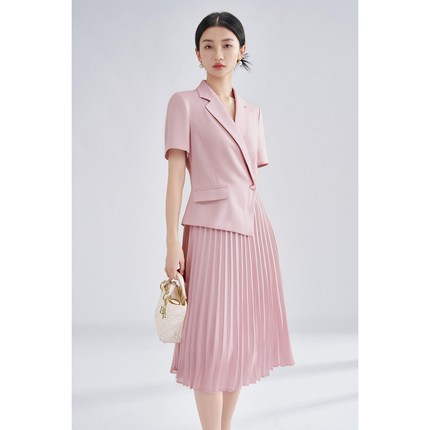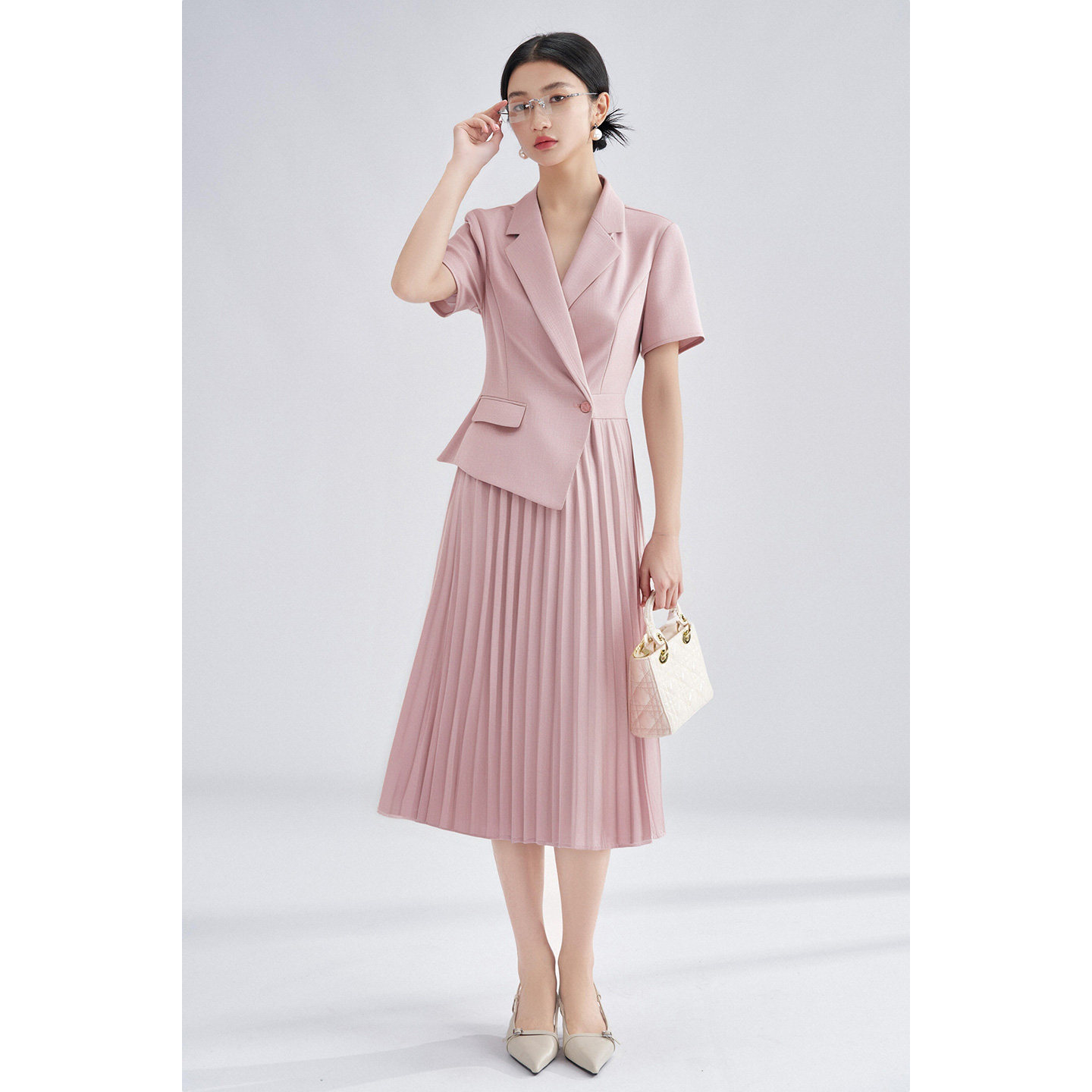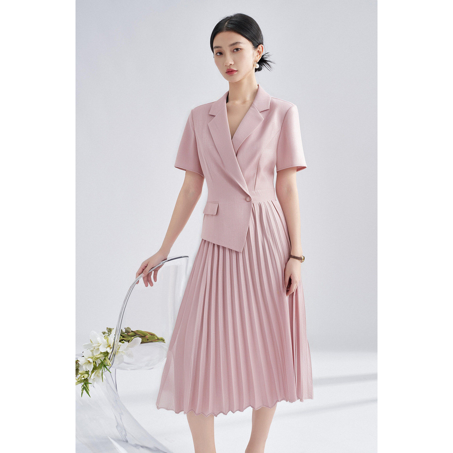 领百褶拼接OL风职业通勤连衣裙1984 设计感西装 米思阳2026春季 新款