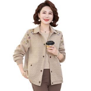 秋冬夹克 老人加厚款 胖妈妈毛呢加绒外套加大码 洋气高贵中老年女装
