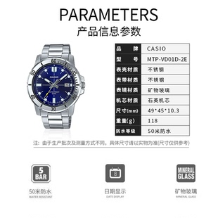 剑鱼水鬼海洋之心edifice商务学生卡西欧手表男石英表MTP VD01D