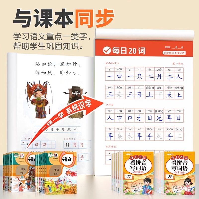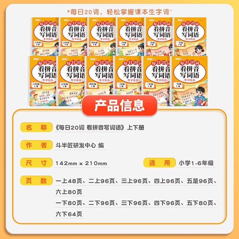 默写语文同步练习册 小学注音生字字词汉字专项强化训练人教版 25新版 看拼音写词语每日20词一年级二年级三四五六上册下册语文人教版