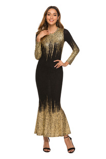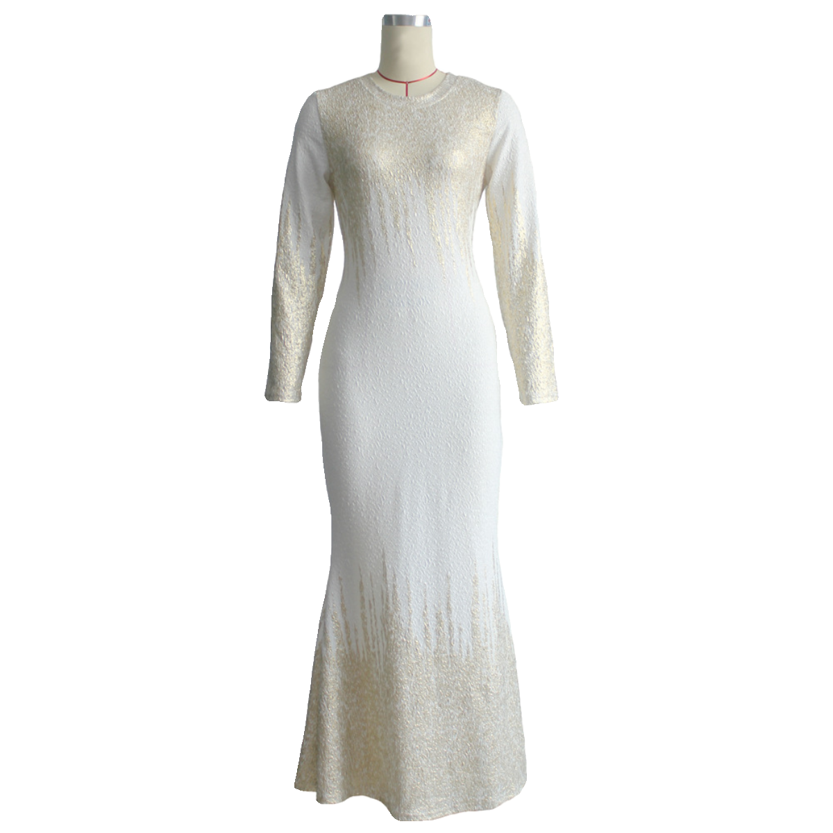 slim fitting long 2023 dress printed sleeved 连衣裙 gilded