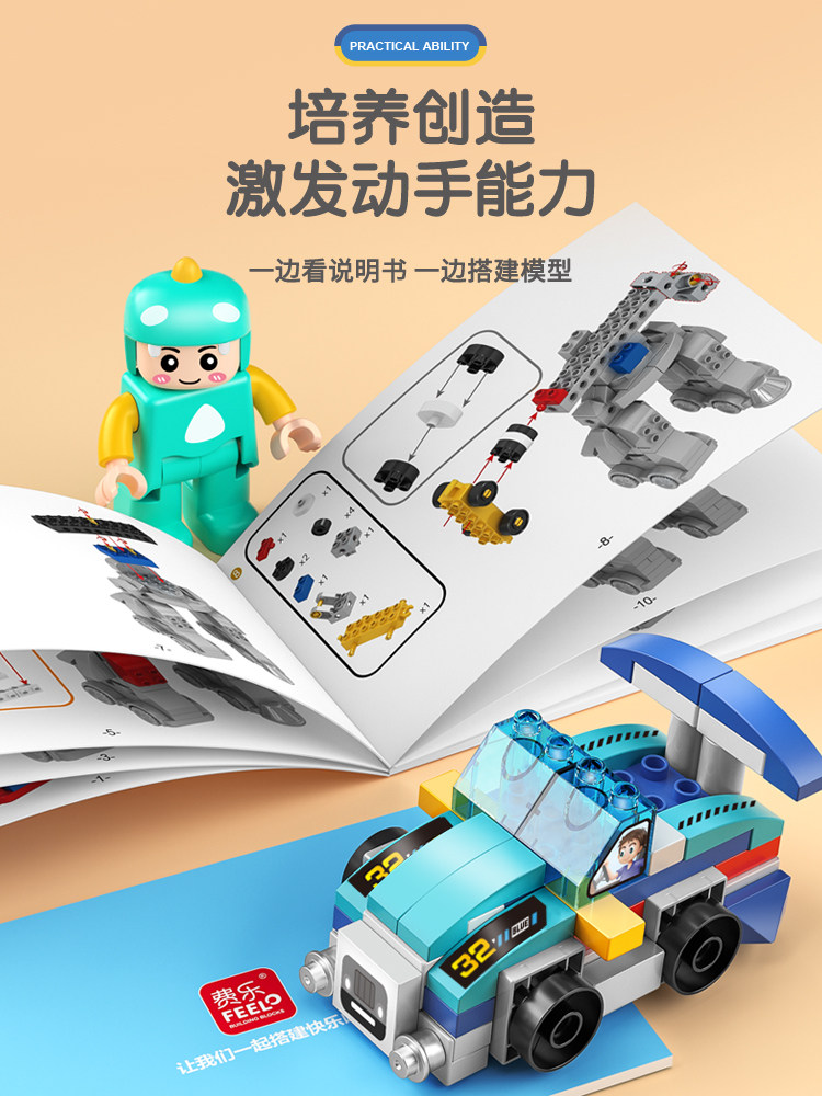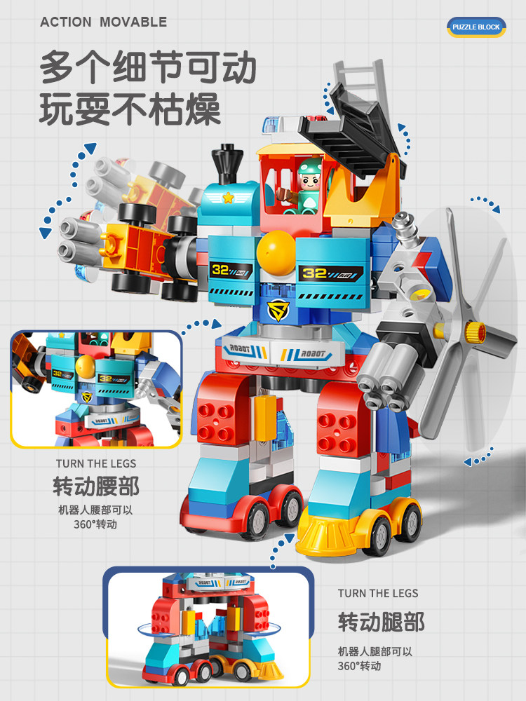 费乐大颗粒儿童拼装 6岁 益智积木百变机器人变形机甲玩具模型3