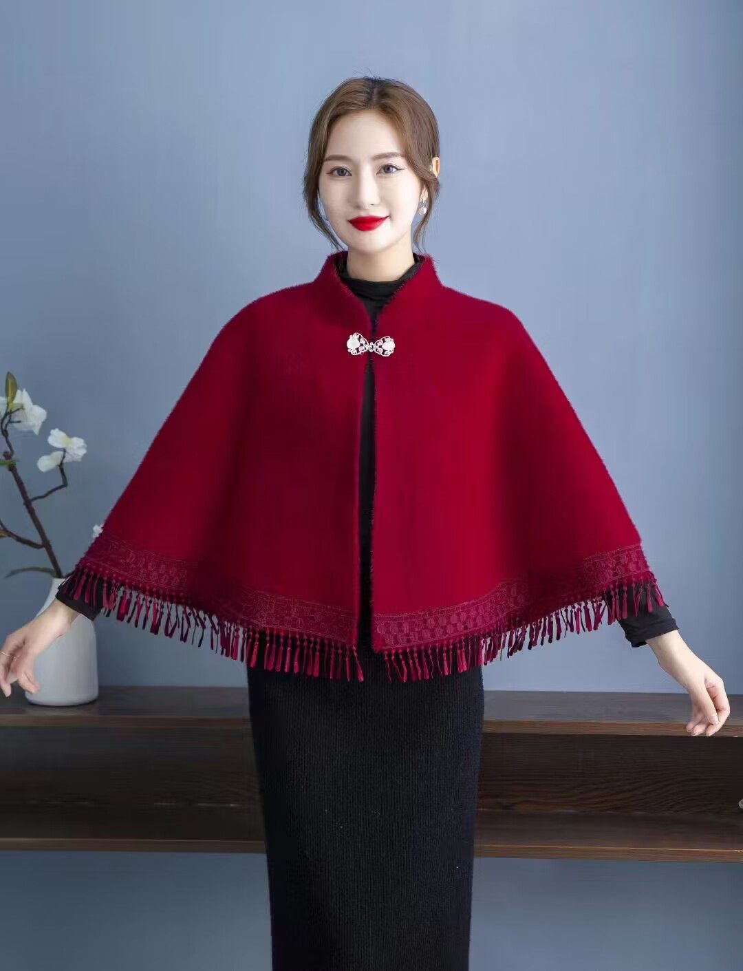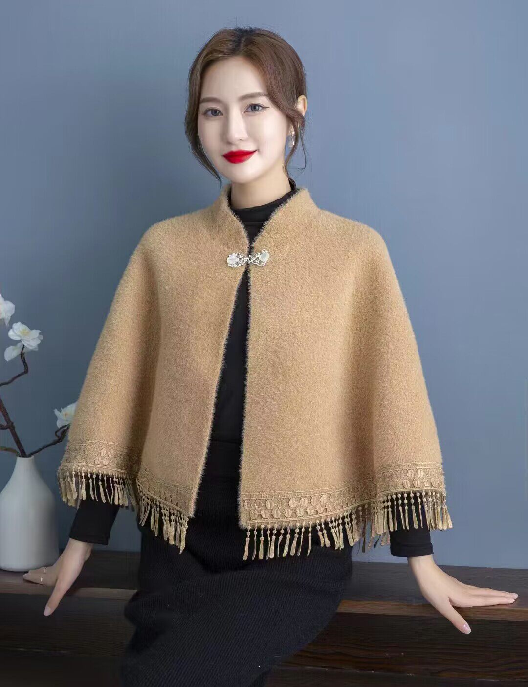 旗袍外搭斗篷小披肩女年轻款 貂毛外套 加厚保暖高端配裙子皮草短款
