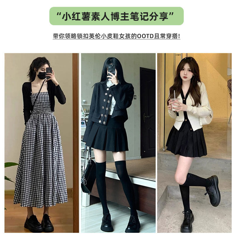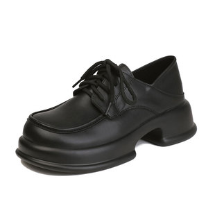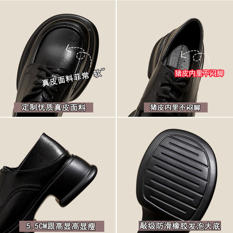 黑色系带配裙子英伦风小皮鞋 jk单鞋 女2024秋冬新款 真皮厚底乐福鞋