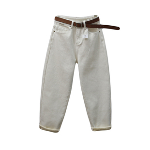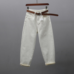 高腰休闲宽松显瘦哈伦萝卜裤 杏色加绒加厚老爹牛仔裤 女2025冬新款