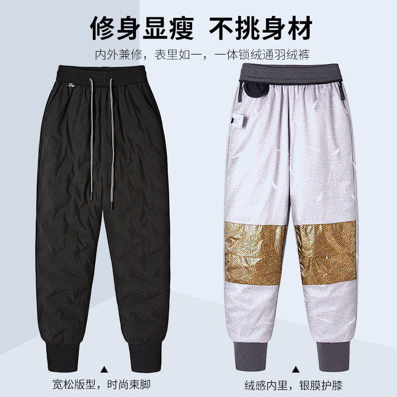 女款 宽松束脚松紧腰长裤 冬季 时尚 外穿加厚保暖鸭绒裤 雪中飞羽绒裤