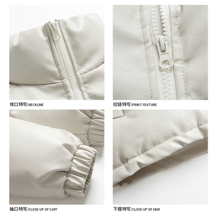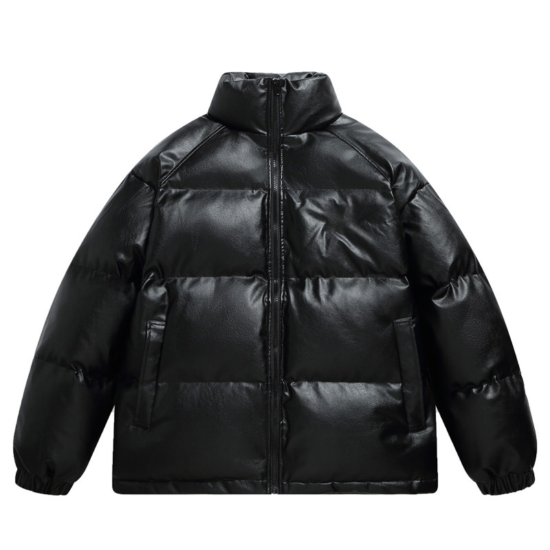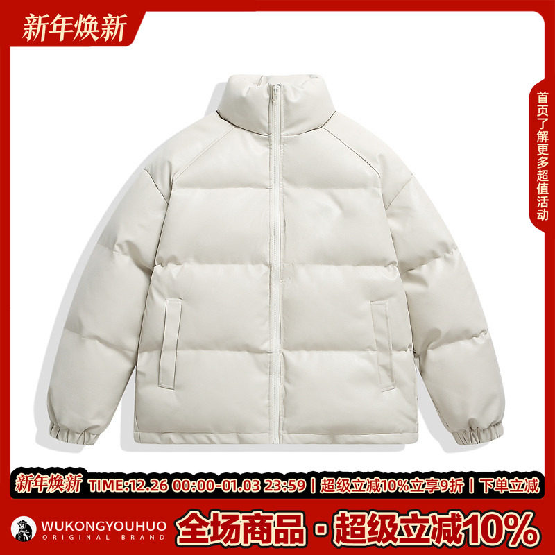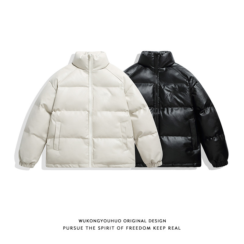 悟空有货美式 潮牌百搭机车棉衣 PU皮加厚黑色立领皮衣棉服男女冬季