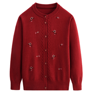 开衫 奶奶装 上衣老太太毛衣 针织外套中老年女妈妈春秋长袖 老人秋季