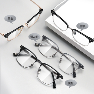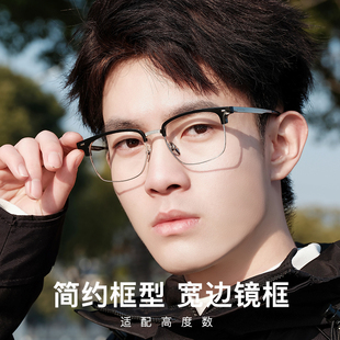 文艺复古痞帅半框眼镜男款 近视可配度数防蓝光眼镜女斯文理工男潮