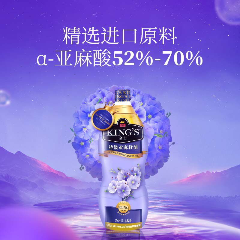 胡麻油 家庭热炒冷食 金龙鱼KING S特级亚麻籽油1.8L